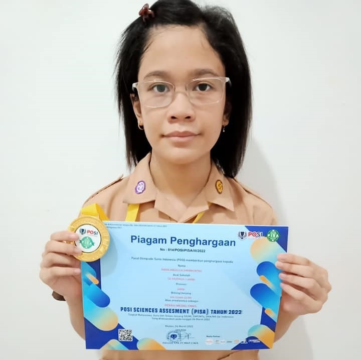 Nadia Angelica Simanjuntak kembali menorehkan prestasi pada ajang POSI Sciences Assesment (PISA) tahun 2022 mwakili SDS Xaverius 1 Jambi.