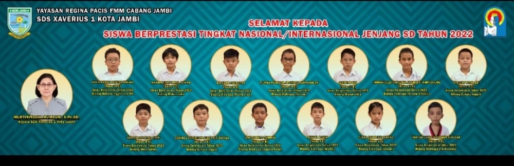 Proficiat dan terima kasih kepada anak-anak hebat yang berhasil mengharumkan nama sekolah dalam meraih prestasi di tingkat Nasional dan Internasional pada Tahun 2022, semoga dapat memberikan motivasi bagi teman-temannya.Tetap semangat dan tetap rendah hati