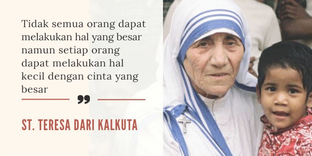Bunda Teresa pernah mengatakan, "Tidak semua orang dapat melakukan hal yang besar namun setiap orang dapat melakukan hal kecil dengan cinta yang besar."