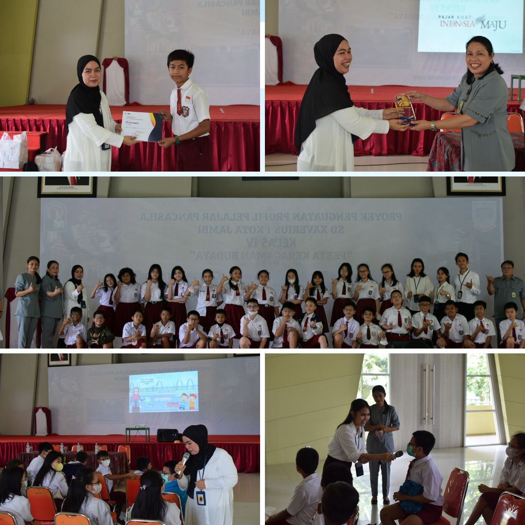 Senin, 20 Maret 2023 telah terlaksana kegiatan Pajak Goes to School sebagai wujud kerjasama antara Yayasan Regina Pacis FMM Cabang Jambi (SD Xaverius 1 Jambi) dan Kantor Pelayanan Pajak Pratama Jambi Telanaipura. Pada Kegiatan ini diinformasikan dan diperkenalkan kepada siswa/siswi, mulai informasi apa itu pajak, Mekanisme pajak, peruntukan pajak sampai dengan aturan - aturan yang harus ditempuh oleh fiskus dalam proses pengelolaan pajak daerah. Tujuan akhir Pajak Goes To School adalah memperkenalkan pajak sejak dini agar siswa / siswi mempunyai kepedulian tentang pajak sehingga nantinya diharapkan bisa menjadi warga masyarakat yang taat pajak