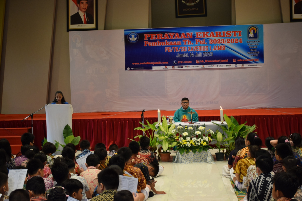 Bulan Juli menjadi bulan yang sangat spesian untuk anak-anak. Karena bulan Juli didedikasikan untuk anak-anak bangsa(Hari Anak Nasional) dan juga merupakan bulan pembukaan tahun ajaran baru 2023/2024. Sekolah SD Xaverius 1 Jambi sangat antusias menyambut bulan yang penuh Rahmat ini. Kegiatan sekolah diawali dengan Masa Pengenalan Lingkungan Sekolah yang berjalan dengan sangat asyik dan meriah selama 4 hari. Sebagai Lembaga Katolik, SD Xaverius juga membuka kegiatan Belajar Mengajar dengan mengucap syukur kepada Tuhan melalui Perayaan Ekaristi. Semua siswa dan guru serta karyawan/I mengikuti perayaan ini dengan harapan semoga Tuhan menyertai kegiatan belajar mengajar selama satu tahun ke depan. Perayaan Ekaristi berlangsung pada 14 Juli 2023 di Aula Xaverius 1 dan dipimpin oleh RD Dibiyo SCJ. Anak-anak sungguh merasa gembira yang diaplikasikan melalui nyanyian-nyanyian yang meriah. Dalam kotbahnya Romo berkata: Anak-anak mesti menjadi pribadi yang CerDik(Cerdas dan Terdidik). Beliau menambahkan bahwa pribadi yang cerdas, apabila diimbangi dengan karakter yang baik maka akan menjadi pribadi yang integritas. Maka inilah tujuannya mengapa anak-anak mengenyam Pendidikan supaya kecerdasan yang dialami dapat diarahkan dengan perilaku yang baik sehingga kita menjadi manusia yang terdidik. Romo juga mengulas kisah dari injil Matius tentang “menjadi cerdik seperti ular dan tulus seperti merpati”. Anak-anak diharapkan untuk menggunakan akal sehatnya dalam berpikir dan memiliki hati yang tulus terhadap sesame. Hal ini menguatkan nilai karakter yang sedang digiatkan dalam sekolah Xaverius 1 Jambi yaitu CHIPS (Compassion, Humility, Integrity, Peace and Servant-Leadership).