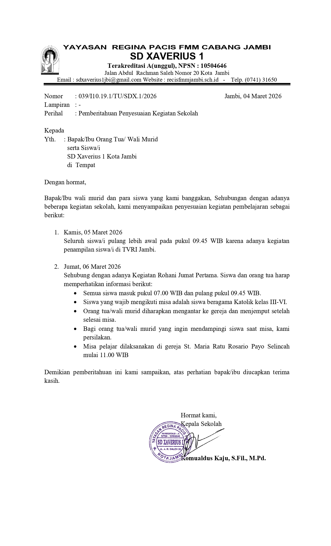 Yayasan Regina Pacis FMM Jambi - Fransiskan Misionaris Maria